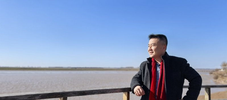 (刘炳辉在焦裕禄书记防风治沙最大的风口和最容易决堤的东坝头乡实地考察学习,这里如今已是一派秀美风光)
